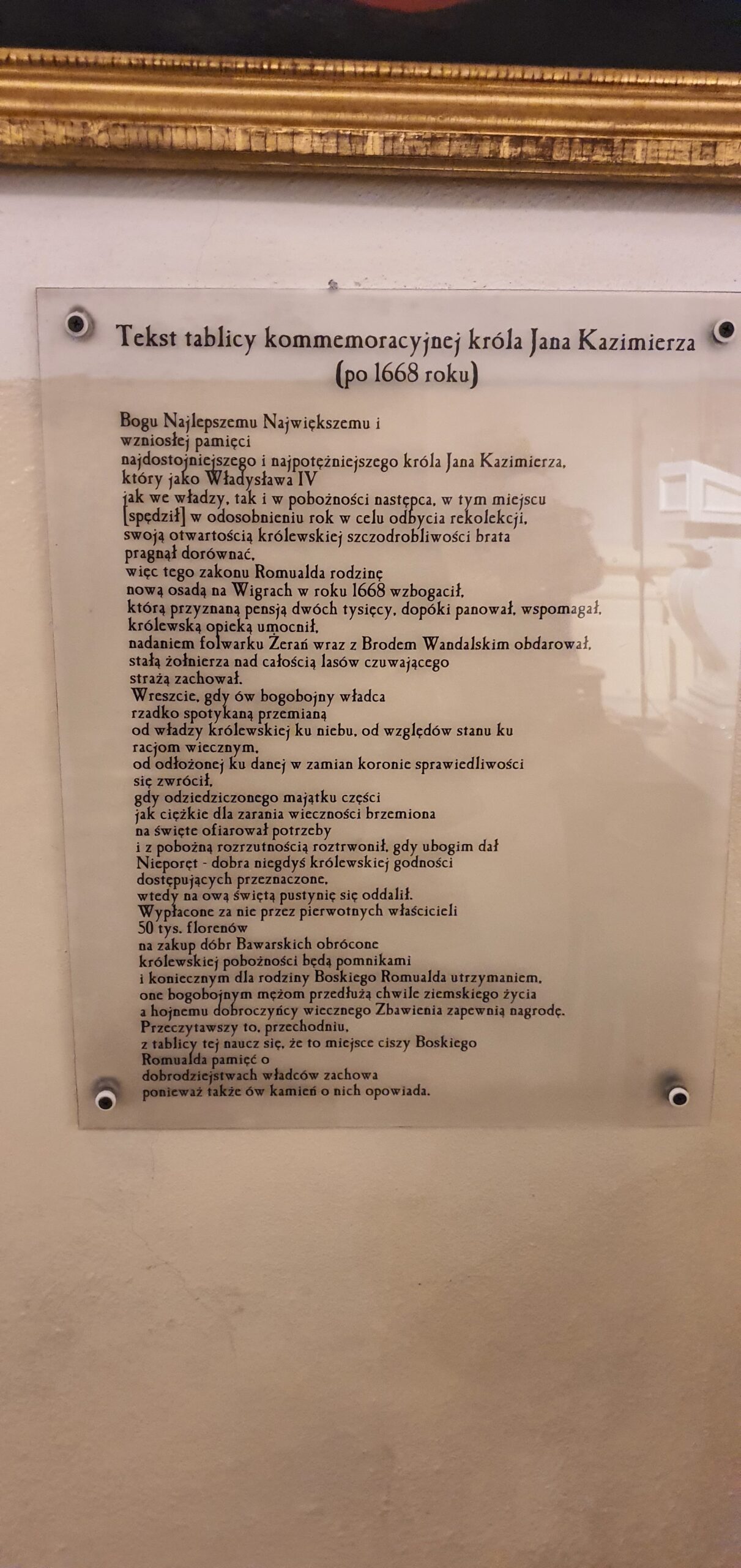 Uzupełnieniem programu prezbiterium z tego okresu jest zespół czterech epitafiów dedykowanych najważniejszym fundatorom: trzy malarskie, wysokiej klasy artystycznej, wykonane na blasze ołowianej, w bogatych obramieniach architektonicznych i z wierszowanymi łacińskimi inskrypcjami oddającymi hołd królom Władysławowi IV, Janowi II Kazimierzowi i Michałowi I (za tym ostatnim kryje się wspomniana nisza na puszkę z sercem władcy) oraz jedno marmurowe, Jana Kazimierza Brzezińskiego, podskarbiego nurskiego. W tym samym okresie zaczęto chować kolejnych ojców w specjalnie wymurowanych katakumbach w krypcie wschodniej przy zamknięciu prezbiterium, w XVIII i XIX w. kontynuowano takie pochówki w naprzeciwległej krypcie. Każdy z nich opatrywano prostą inskrypcją łacińską.